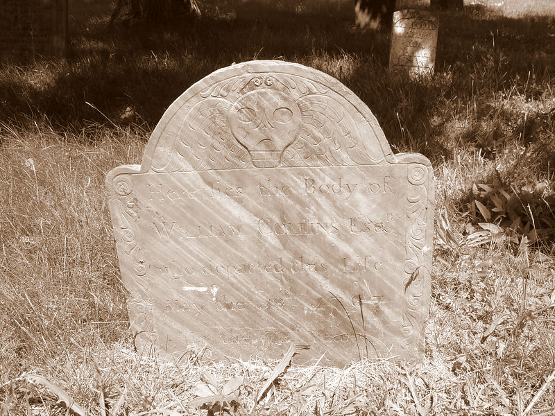 William Collins was born January 14, 1689/90 in Lynn, Essex County, Massachusetts. He was the son of Joseph Collins and Maria Smith. He was a Quaker. He married Abigail Richards on November 21, 1711 in Lynn. Her parents were John Richards and Mary Brewer. When her father died in 1713, she received £13 from her father’s estate. They had at least one child, Job (or Jacob) Collins who was born on August 19, 1714 in Lynn. Job married Sarah Graves who was the daughter of Samuel Graves and Elizabeth Collins. William died on May 17, 1767 when he was 78 and was buried in the Old Burying Ground of Lynn. Abigail was buried after January 17, 1774.