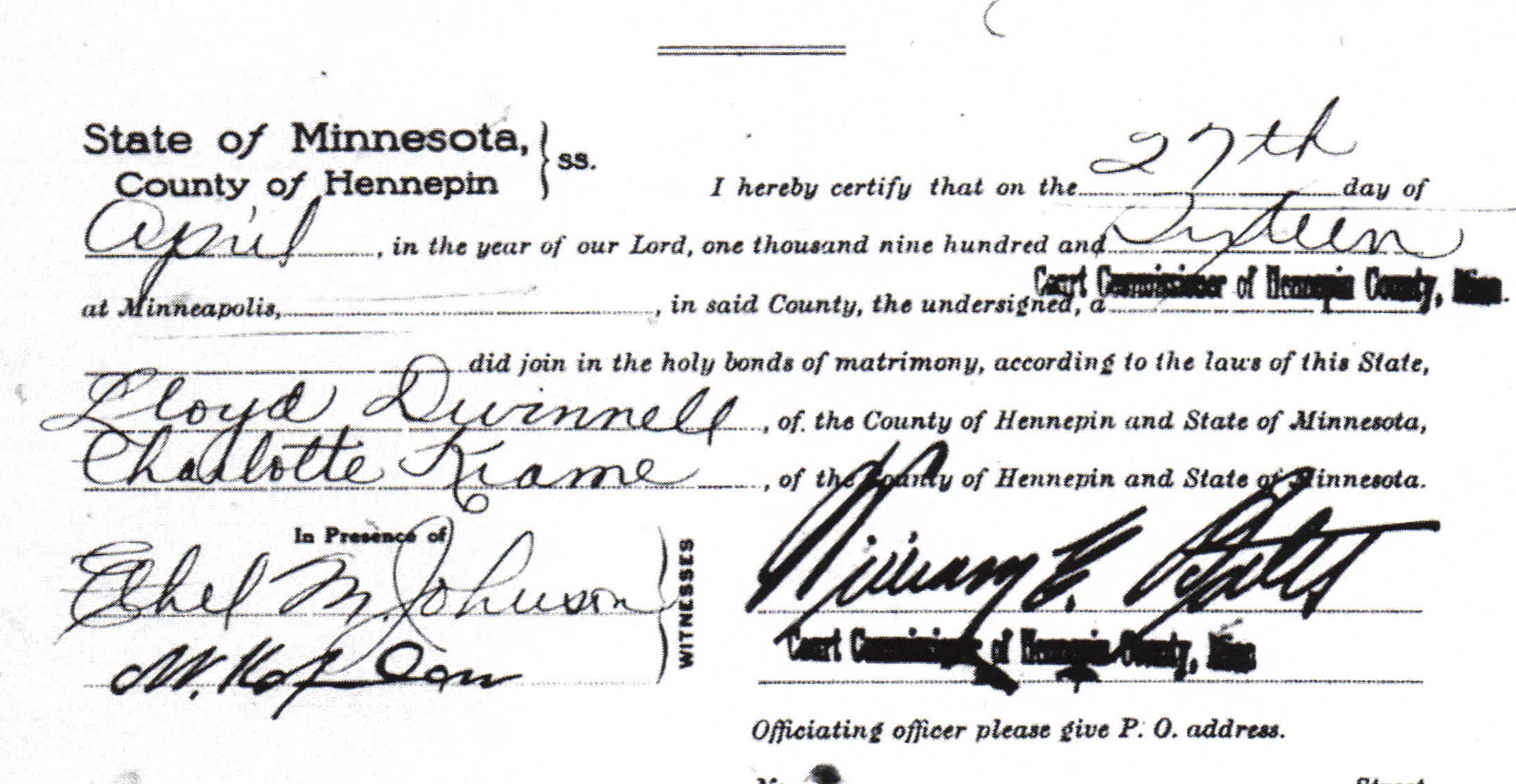Thomas Lloyd Dwinnell was born on January 27, 1896 and died May 10, 1958. He married Charlotte Frances Kraml on April 27, 1916. He was a boiler maker.