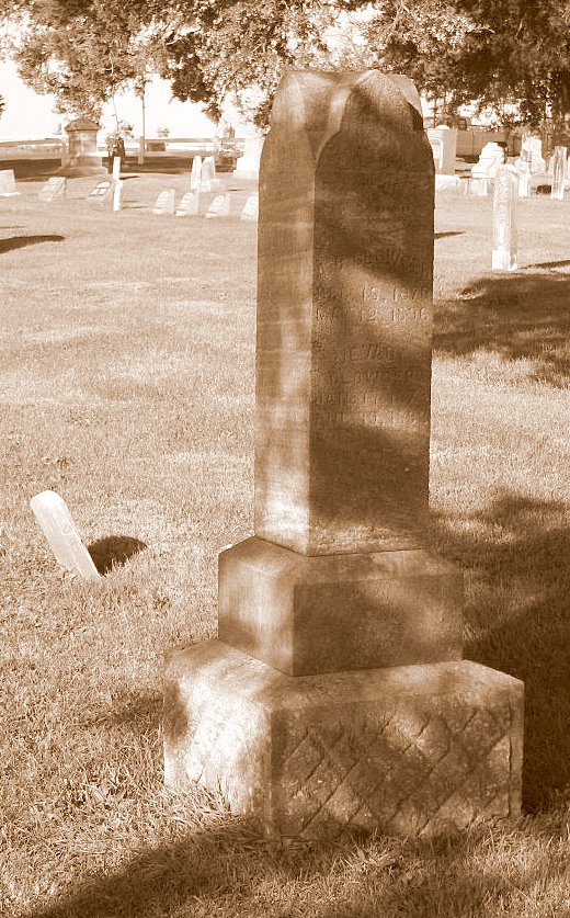 the small headstone to the left of the larger stone marks Missouri's grave. The inscriptions on the main stone are very hard to read unless the light is just right. Missouri and James are on the north side of the stone; A. B. and Nevada, on the south.
