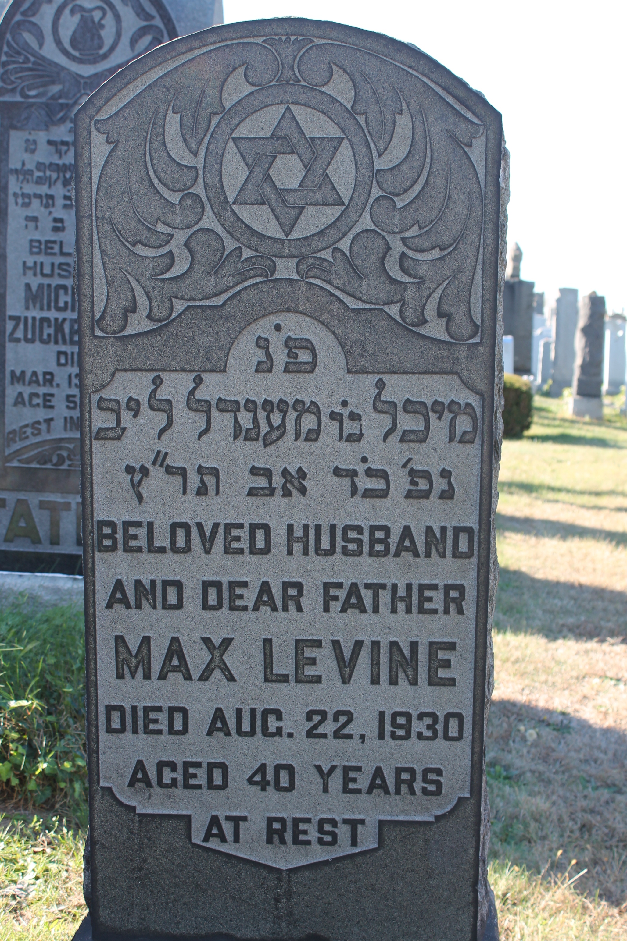 Max (Michel) Levine was born in Vilna about 1890. His parents were Mendel and Riva Levine. He immigrated to America in 1905 on the ship Finland from Antwerp, Belgium. On March 19, 1916 a Max Levine married an Ida Shapiro in Manhattan. Ida was born in 1892 and immigrated to the United States the same year. Marion Edith Levine ( October 30, 1918), Max and Ida became naturalized citizens on April 15, 1919. Manes and Bailey (Bella) Tuller witnessed their affidavit. At the time of the 1920 census, they were living in Brooklyn District 6, Kings County, New York at 169 Mywtee?. The household consisted of Max age 30, Ida age 28, and "Mary Idith" one year and 3 months. Max was employed as a house painter. At the time of the 1930 census they were living in Brooklyn District 82. The household consisted of Max age 38, Ida age 37, Marion age 11, Milton age 9, Marvin age 6, and Jerome age 2. Ray Nerid age 24, Ida's sister, was also living with them. Max was the proprietor of a candy store. They lived at 73 5th Avenue in 1930 at the time Max died. Max died on August 22, 1930 in Brooklyn, New York. He was painting a house at 233 Lafayette Avenue and fell from the scaffold and fractured his skull. He was buried at Mt. Lebanon cemetery near his mother. The date on the tombstone is off by four days. Most likely, the Gregorian date is correct, and the Hebrew is not. The burial society was Williamsburg Community. In 1940, Ida and the children were still living in Brooklyn at 247a Throop Avenue. The household consisted of Ida age 46, Marion age 21, Milton age 19, Marvin age 16, and Jerome age 13. Marion was working at a bindry, Milton worked with instruments for a dentist. Ida had income from a union indemnity. |