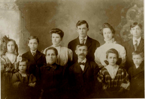 In 1907 Josiah and Eliza moved to Red Oak, Montgomery County, Iowa and lived at 203 South Second Street at the edge of “Russian Town." They moved to Fuller farm for about a year. It was owned by the Hayes family. After that, they moved to a dairy farm. Josiah did carpentry work on these farms and Eliza worked in restaurants. Back Row- Gus, Bryan, Grace, Elmer, Bertha and Harry Front Row: Twyla, Eliza, Josiah, Ethel, Jack Taken about 1908 About this time the older children had begun to marry and set up their own households. Mary Grace married in 1907 and her daughter Vera was born in 1909. Bertha married in 1908 and her daughter, Dorothy was born in 1911. John Elmer married in 1909 and his oldest, Hazel was born in 1910 and Joseph was born in 1914. Harry married about 1913 and his oldest Bonnie was born in 1914. At the time of the 1910 census the family was Red Oak. The household at that time consisted of Josiah, Eliza, Ethel, Bryan, Gusta, Andy and Twyla. Grace was in Jordan, South Dakota, Elmer was in Montgomery County, Iowa, and Bertha was in Rock Springs, Wyoming. After Red, Oak, Josiah bought 220 acres of wild land in Minnesota where he cut timber. Harry and his wife, Bess, were already in Wright. Their children Ralph, James, Harold, Beulah, Mildred and Mae were born there. His granddaughter Maryon, White, wrote, that Josiah