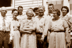 Across the front - Jack Smith, Bertha Kimsey, Joan Smith, Ruth Taylor, Gus Larson, Elmer Smith, Dorish Taylor Hall, Mina Keef