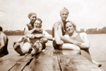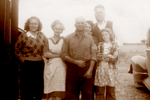 Larson's farm in the summer of 1925. It was probably the 4th of July. Bill White, Perry, Grace, Vera holding Maryon, unidentified friend and Eliza. Twyla Mae was born the following November.