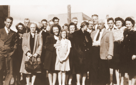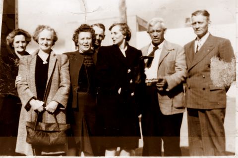 Elmer Kimsey, Mina Kimsey, John Smith, Bertha Kimsey, Lillian Smith, Jack Smith, Bill Smith, Twyla White and Dorothy Kimsey. Portland Oregon 1955