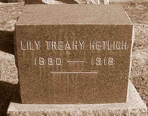 Lillian Estelle (Lillie) Treahy Hetlich was born August 10, 1890 in San Diego, California. Her parents were John Patrick Treahy and Matilda Jones Treahy. She was listed in the 1912-13 San Diego Directory as a clerk at the Marston Company Department Store. |